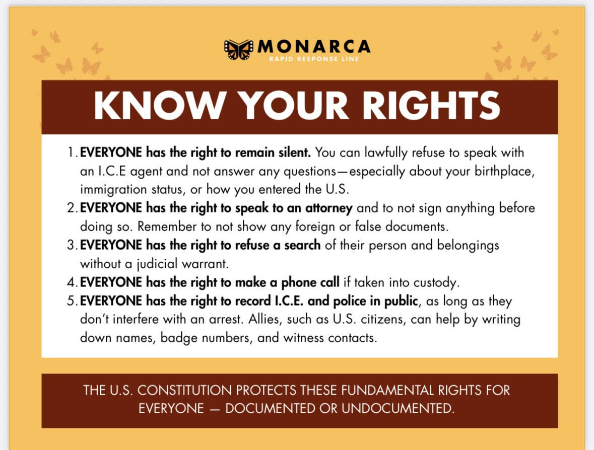 | Monarca Community – Legal Observer Hotline | Hot Line for ICE Presence: Request Trained Legal Observers: Rapid Response | https://archive.ph/MELba 612-441-2881 (24/7) |